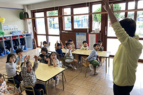 「言えない」のではなく「知らない」言葉なのです。幼稚園の年少組・子育て支援の先生方は場面をとらえて教えていきます。