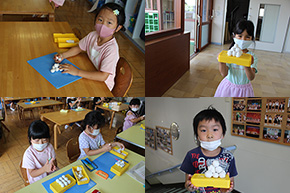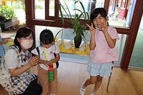 | 昔の人は、お米がたくさんとれますようにとお月様にお願いしました。みんなは何をお願いしますか? | 小さなクラスのお友だちも、粘土のお団子やすすきを見て十五夜に触れる機会となりました。 |