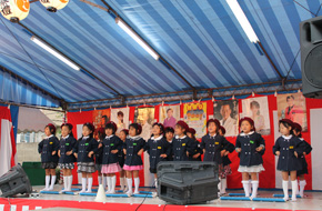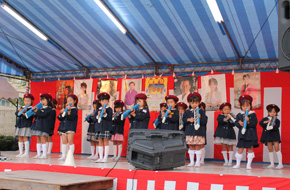 メロデイオンで「もりのくまさん」「きらきらぼし」を演奏しました。 夕方の秋空にメロデイ―が響き、祭りの“いっとき”を会場の皆様が聴き入ってくださいました。 |