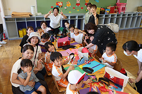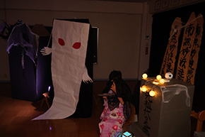 本格的な手作りお化け屋敷…先生方の創意工夫が感じられますね♡ 最後の最後には新潟のおばけが自分のお名前を伝えるとお土産をくれます(笑) みんなしっかりと言えたかな!? |