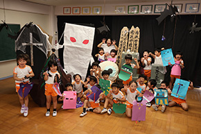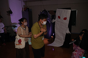 | 最後はおばけ屋敷で記念撮影パチリ♪ みんなおばけになりきっていますね! |