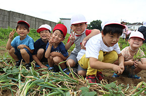 坂戸市にある農家さんよりたくさんのねぎをいただき、年長組のお兄さんとお姉さんが苗植えに行ってきました!