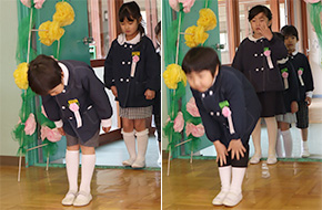 園庭でのセレモニー 保護者の方に園庭で最後の歌を元気よく歌いました。 |
