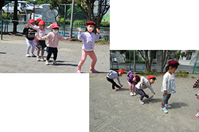 4月、5月の体操は「はとぽっぽ体操」です♪ 足の曲げ伸ばしやジャンプの振り付けも上手! 楽しく体操できましたね。 |